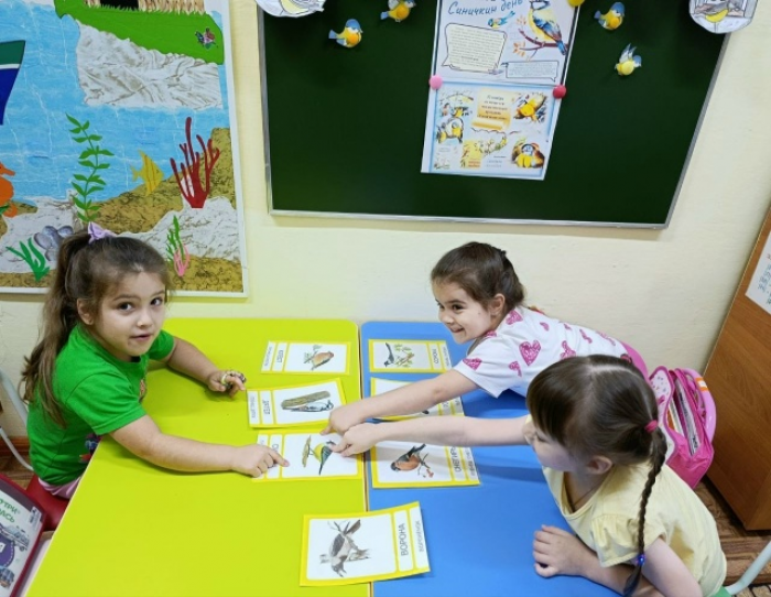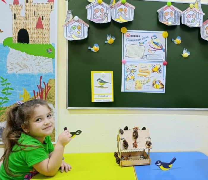 , сколько весит сама.Дошколята играли в игры "Найди птицу по описанию", "Птичий домик", слушали стихотворения, выполняли аппликацию "Синички на кормушке".Обсудили, что синиц можно кормить семечками тыквы, подсолнечника, зернами гречки, салом.Таким образом, дети узнали, что зимой нужно мастерить кормушки, и обещали не забывать кормить птиц.