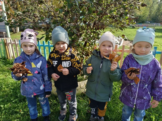 На прогулке мы не только любовались её яркими красками, но и собрали целую коллекцию прекрасных листьев для гербария.